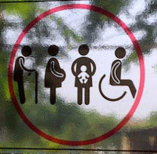 Pengumuman di atas baru saya lihat tadi pagi. Judulnya, "Tata Tertib Penumpang di Transjakarta" (Saya sengaja memotret sebagian saja, yang penting menurut saya). Perhatikan aturan teratas di foto tersebut. Apakah menurut Anda, kalimat itu wajar-wajar saja?